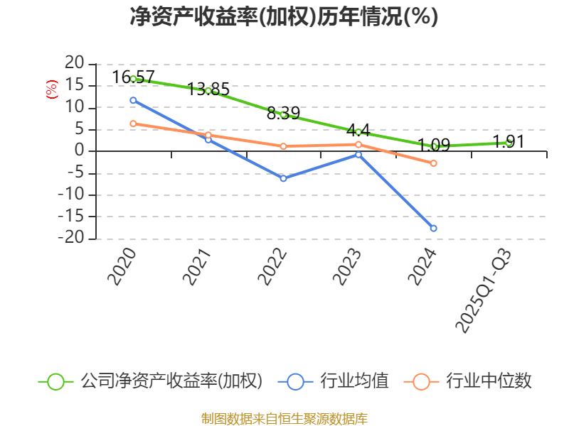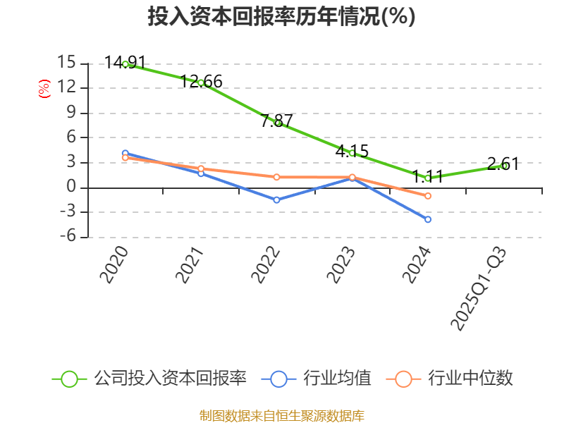 盈利能力方面, 2025年前三季度公司加权平均净资产收益率为1.91%,同比下降1.07个百分点。公司2025年前三季度投入资本回报率为2.61%,较上年同期下降0.2个百分点。