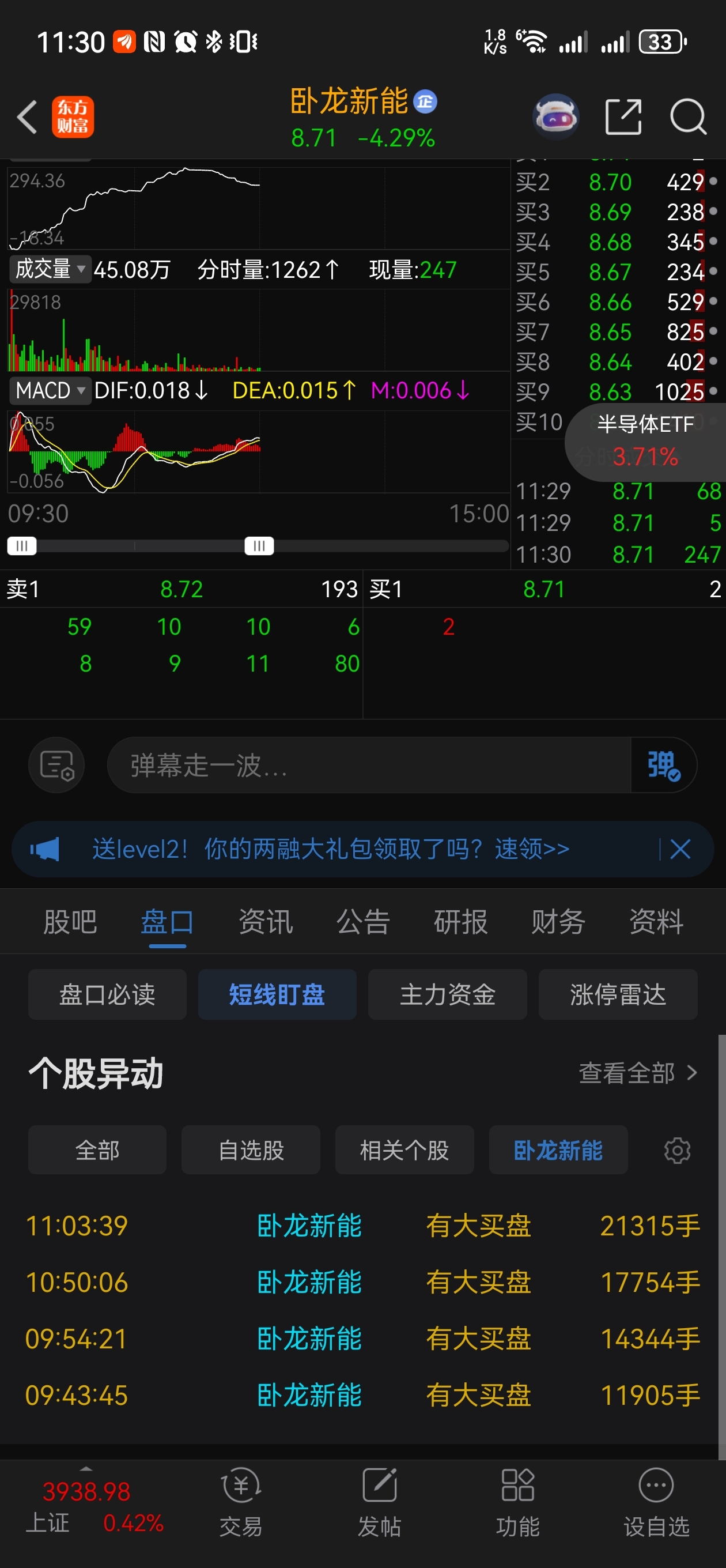 $卧龙新能(SH600173)$ 主力吃饱了就应该干活了