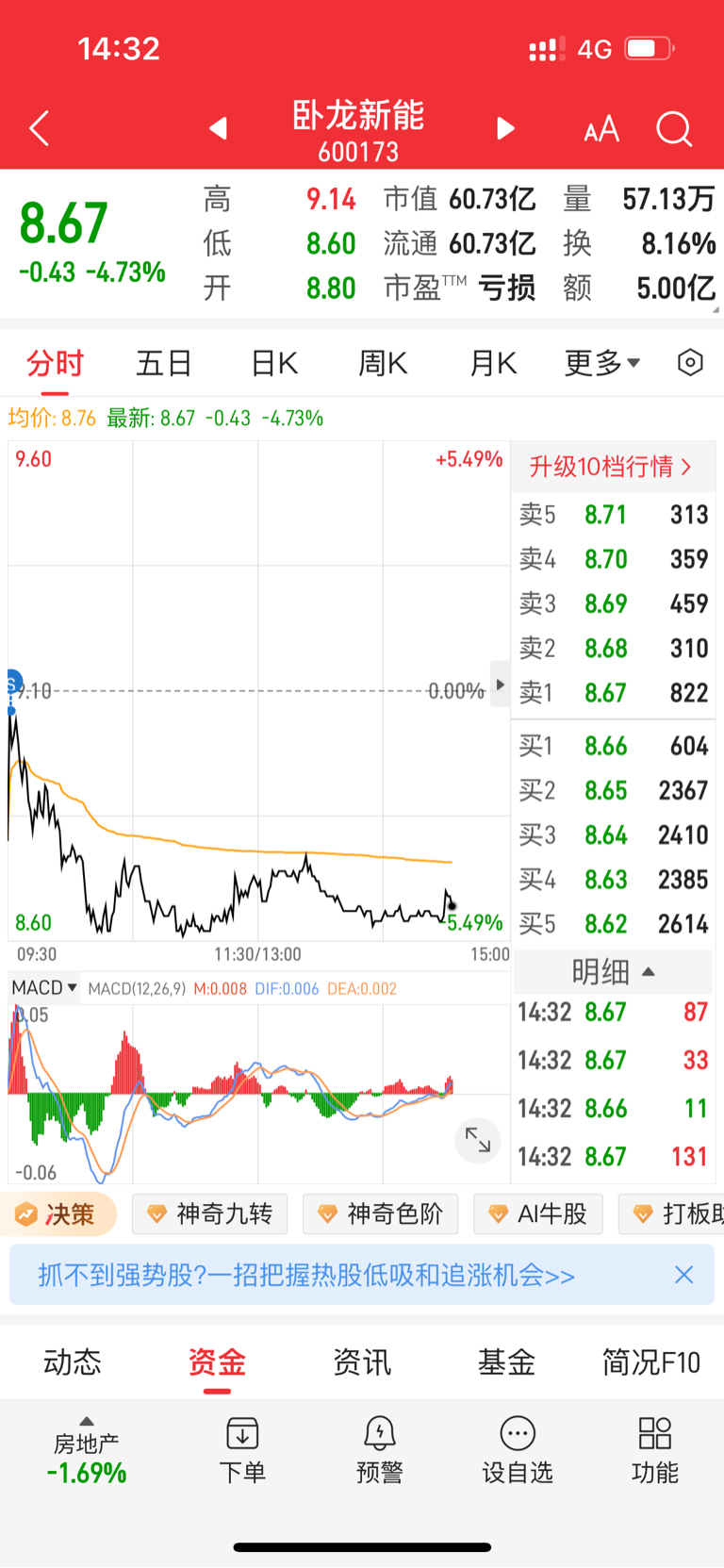 $卧龙新能(SH600173)$ 套了我十几个点,还好早晨没相信你早早的走了。