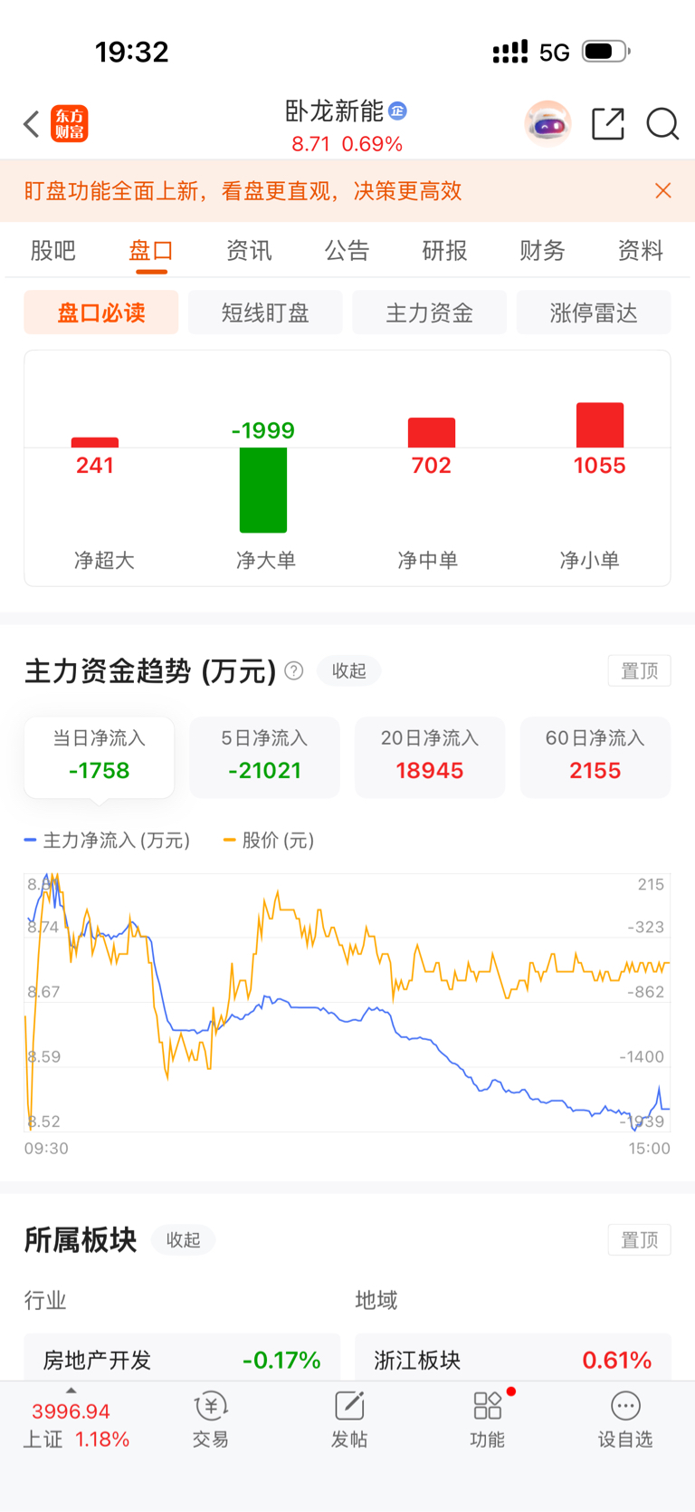 $卧龙新能(SH600173)$ 主力跑了散户接盘