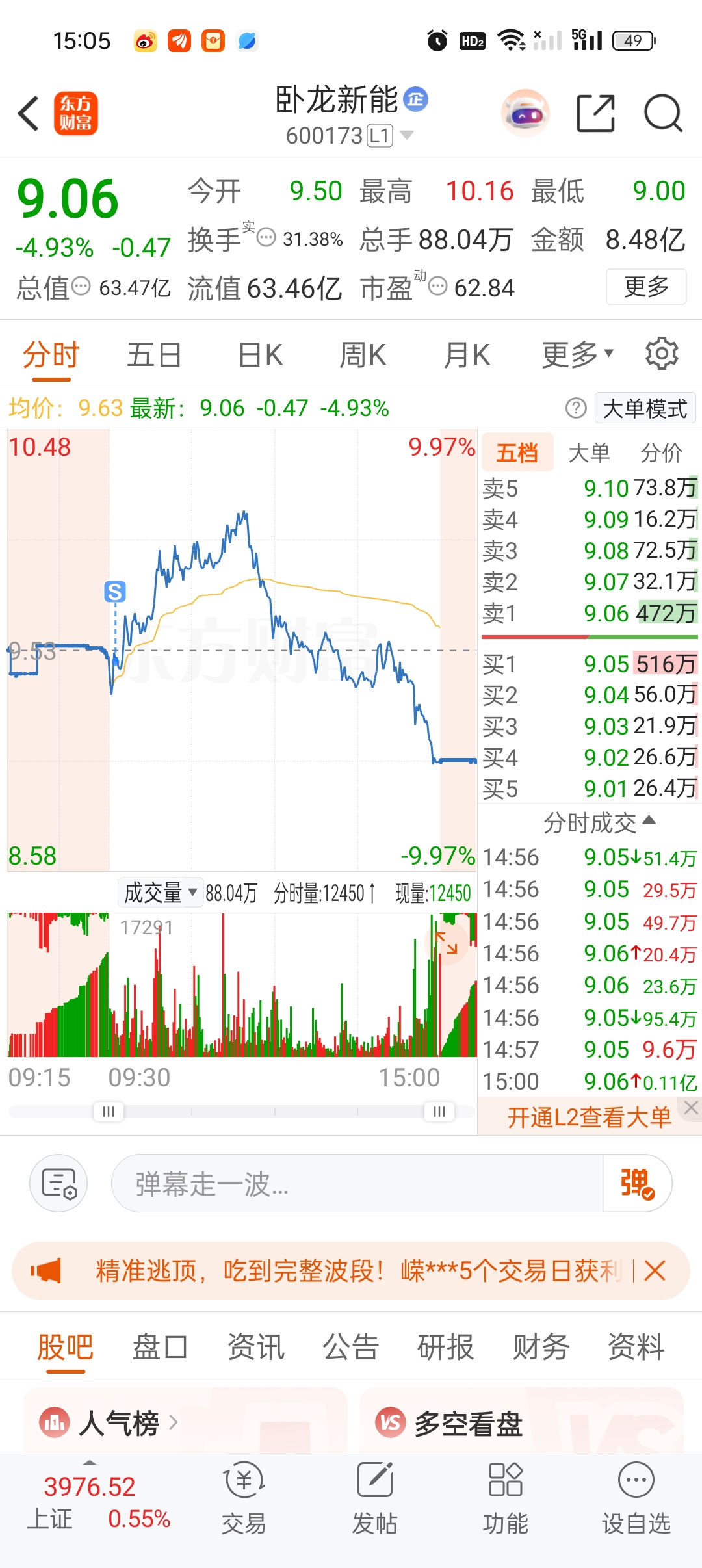 $卧龙新能(SH600173)$ 原本卖飞了!回头一看卖对了!可惜没喝口汤