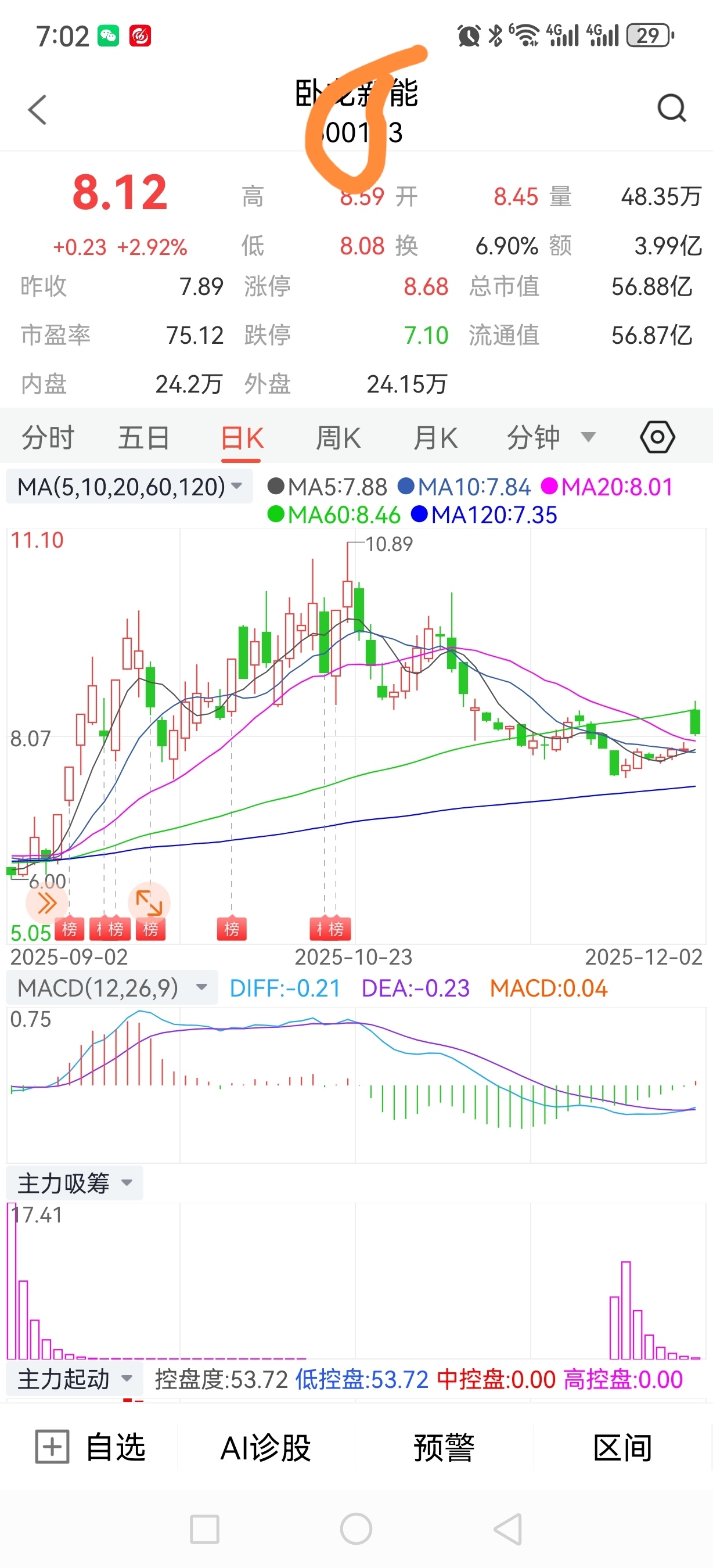 $卧龙新能(SH600173)$ 主力控盘稳得很,三个点附近一动不动,大概率明天跌一下,后天直接起爆。