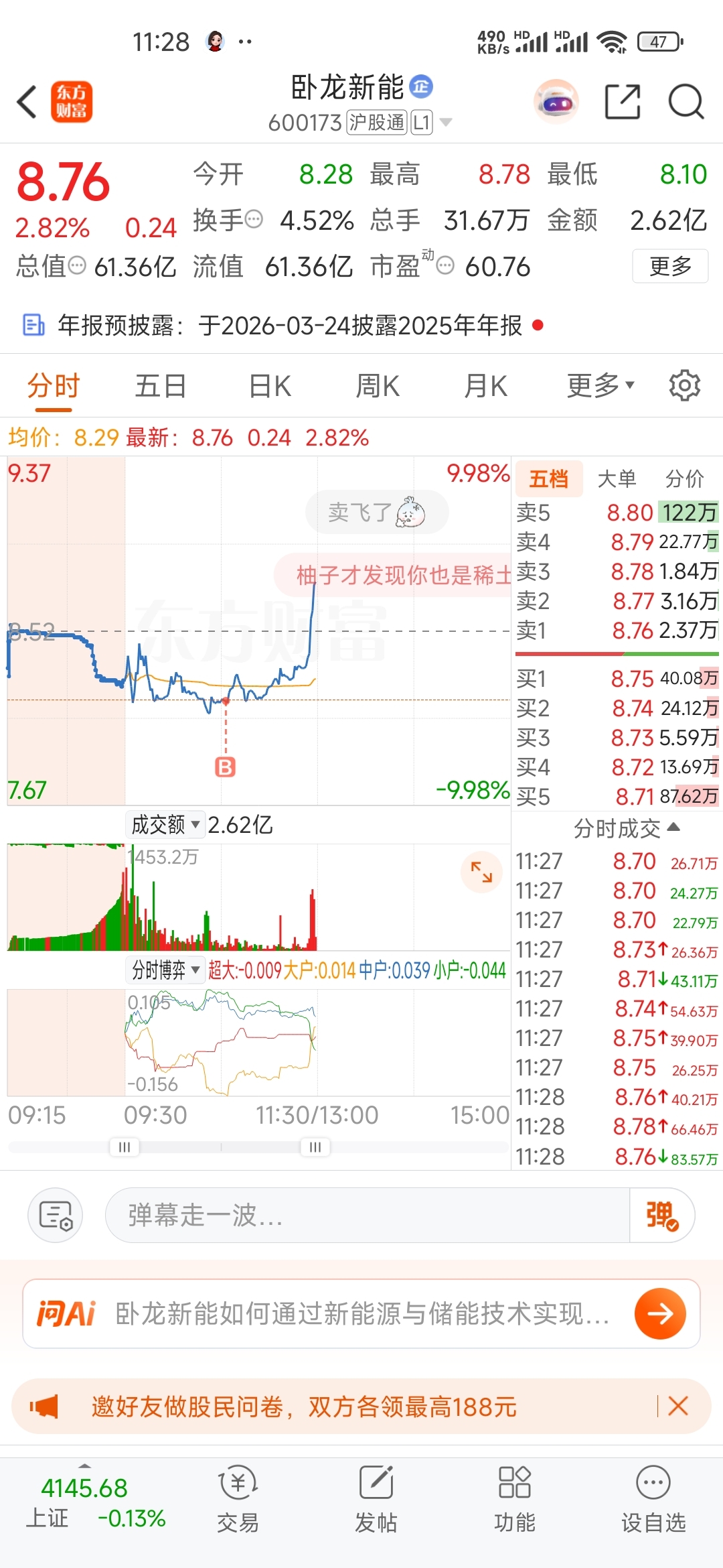 温馨提示: 1.根据《证券法》规定,禁止编造、传播虚假信息或者误导性信息,扰乱证券市场;2.用户在本社区发表的所有资料、言论等仅代表个人观点,与本网站立场无关,不对您构成任何投资建议。用户应基于自己的独立判断,自行决定证券投资并承担相应风险。《东方财富社区管理规定》