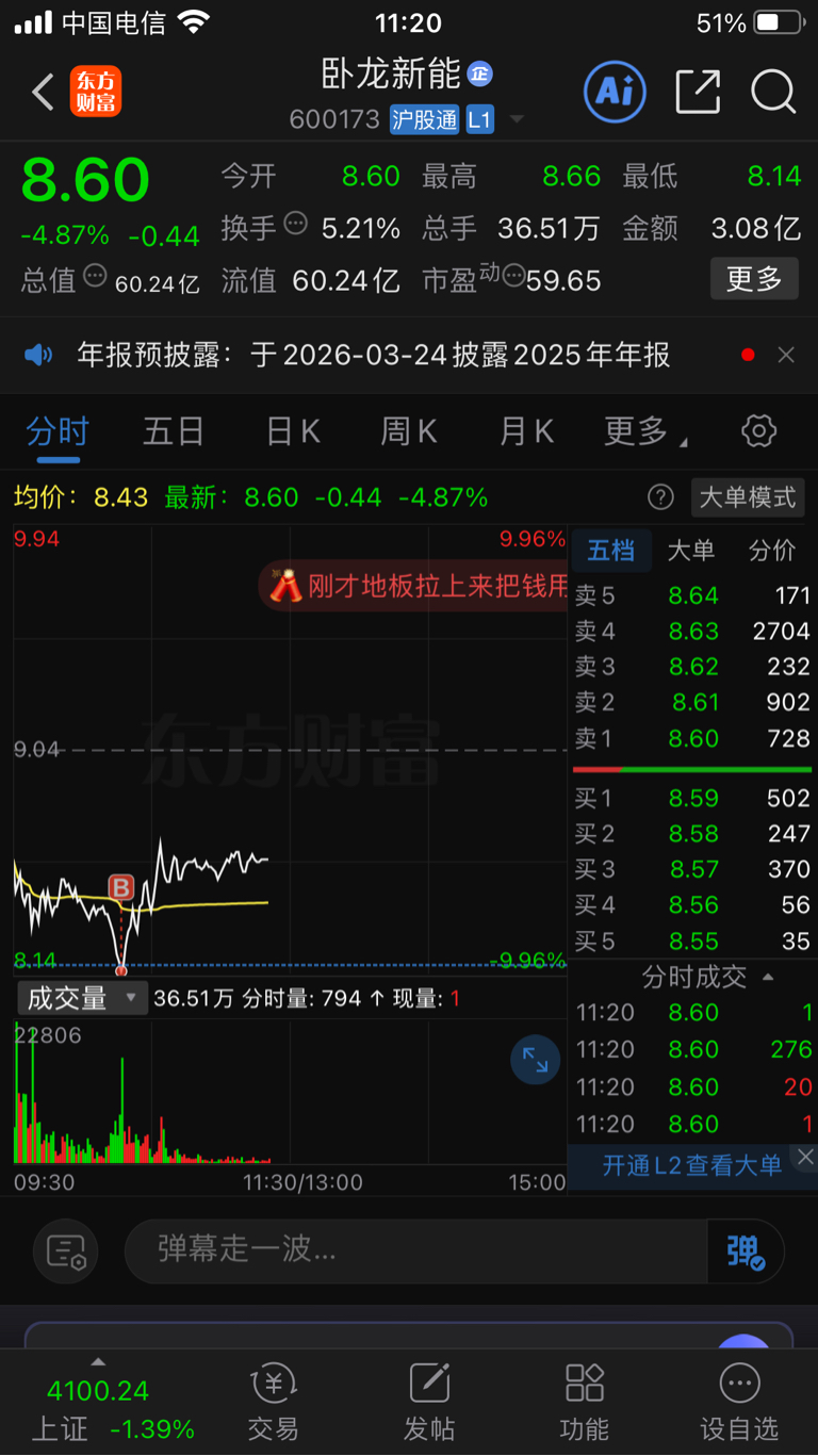 $卧龙新能(SH600173)$ 我是抄到底了吗?