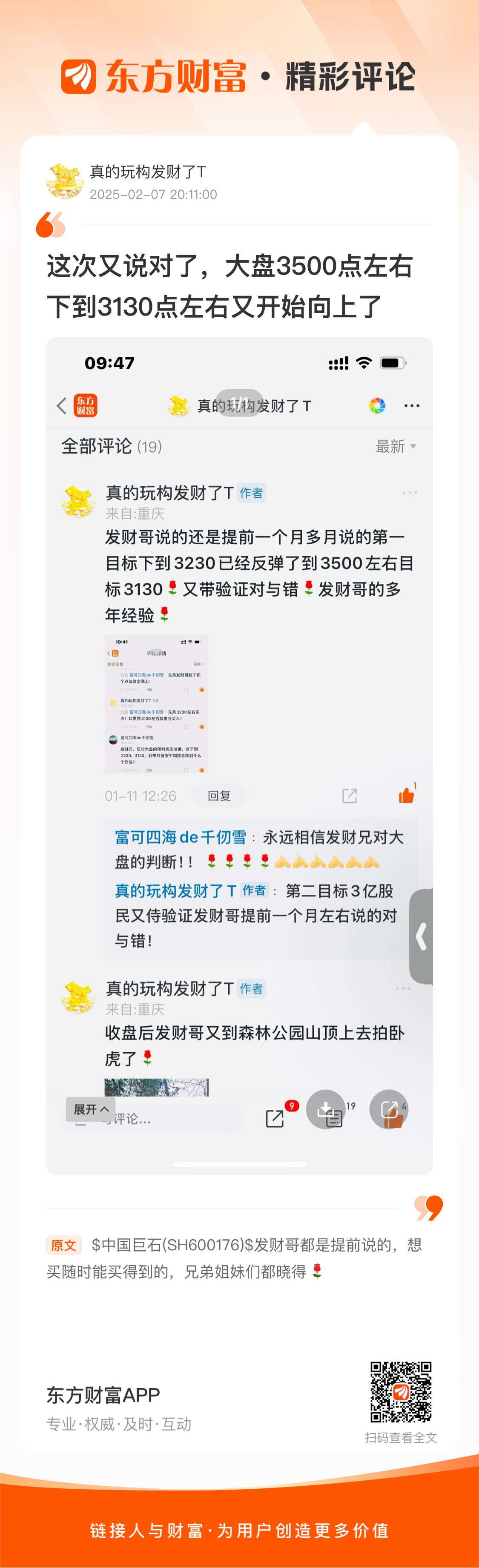 温馨提示: 1.根据《证券法》规定,禁止编造、传播虚假信息或者误导性信息,扰乱证券市场;2.用户在本社区发表的所有资料、言论等仅代表个人观点,与本网站立场无关,不对您构成任何投资建议。用户应基于自己的独立判断,自行决定证券投资并承担相应风险。《东方财富社区管理规定》