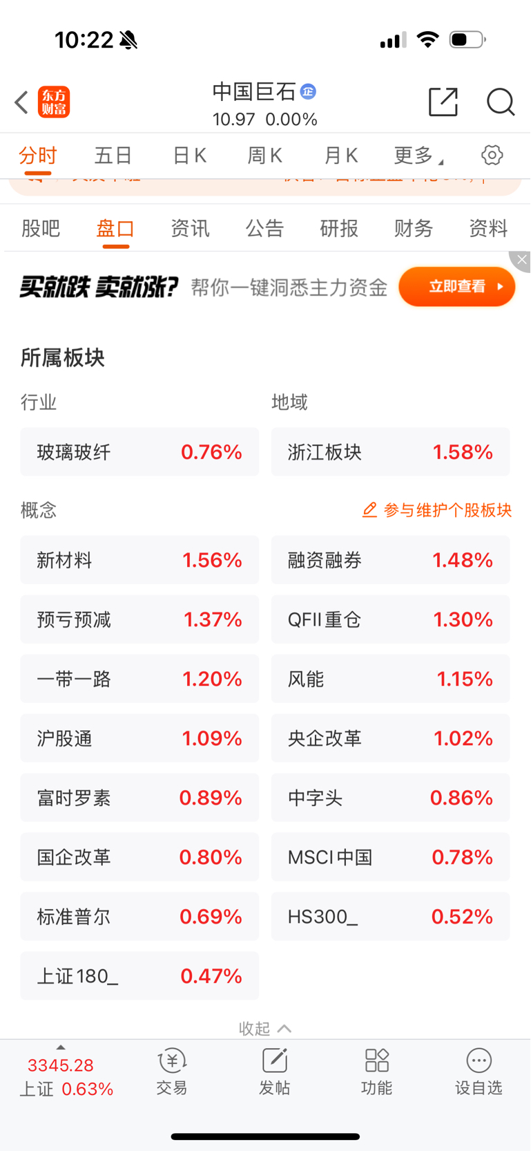 $中国巨石(SH600176)$ 板块大盘跌他也跌,板块大盘涨他还是跌。