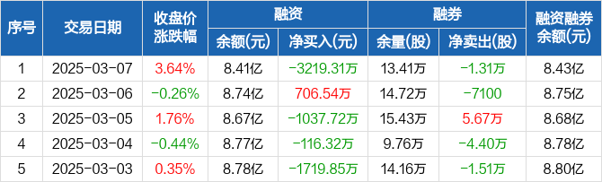 中国巨石:融资净偿还3219.31万元,融资余额8.41亿元(03-07)