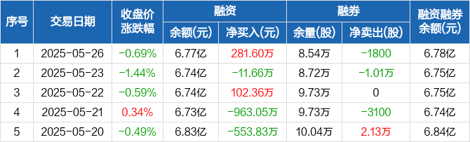 中国巨石:融资净买入281.6万元,融资余额6.77亿元(05-26)