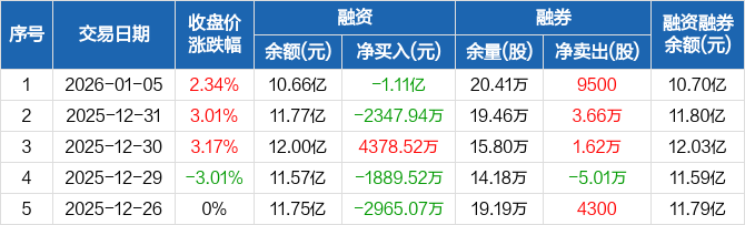 中国巨石:融资净偿还1.11亿元,融资余额10.66亿元(01-05)