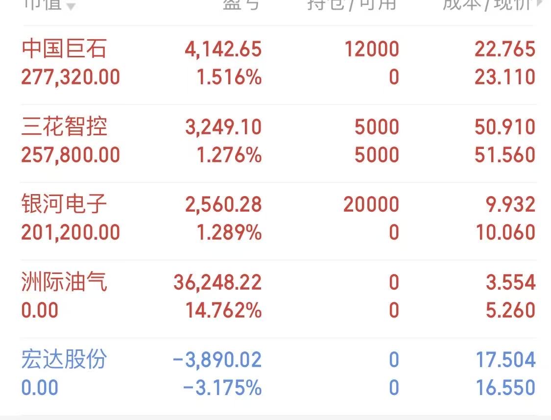 新仓$中国巨石(SH600176)$ $银河电子(SZ002519)$ 银河破了他前面的缺口肯定要会会他,量能和趋势走的这么好肯定上车。宏达股份和洲际油气破线了,一定出局,绝对不能有幻想。