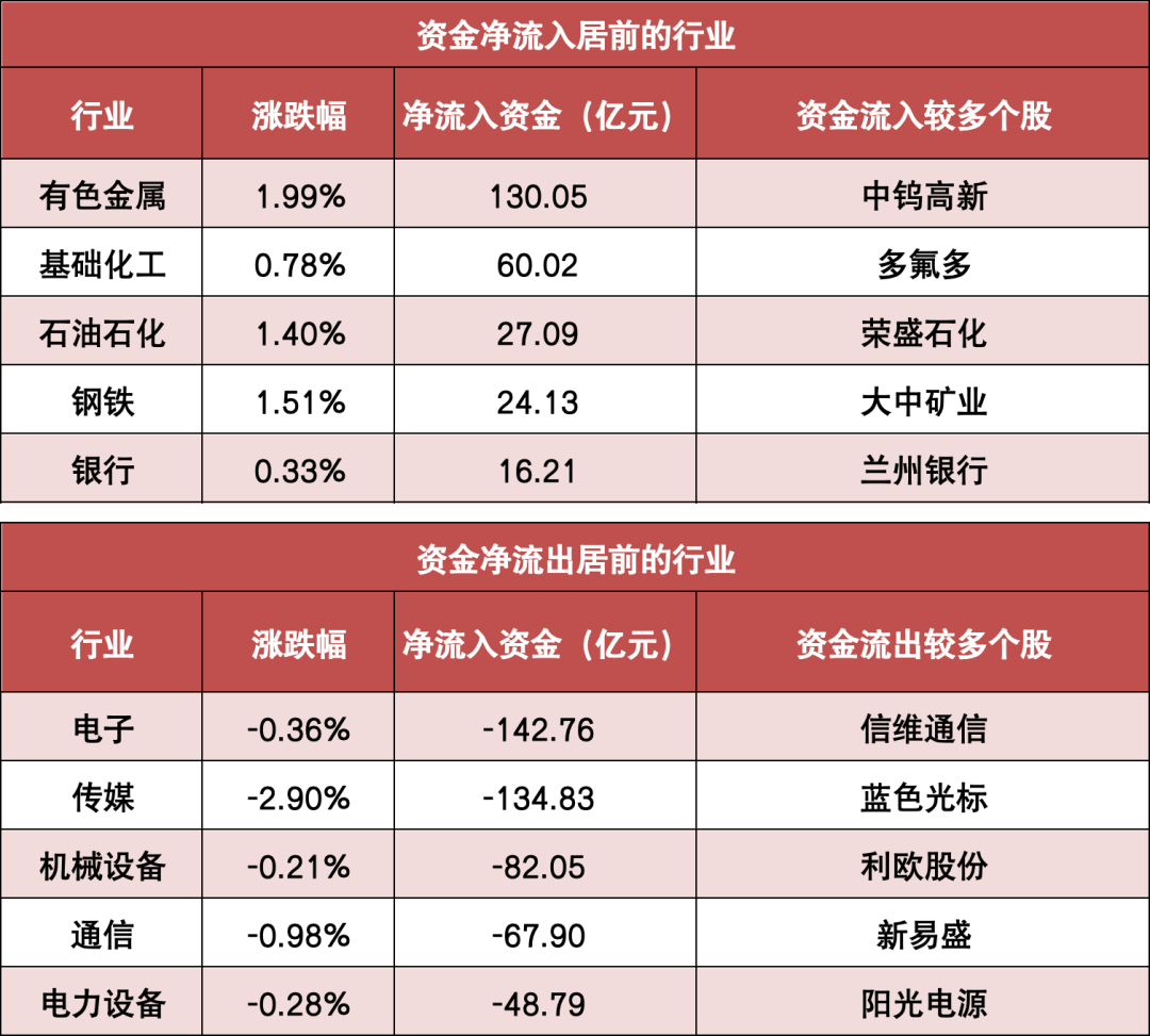 3.有色金属等行业实现净流入