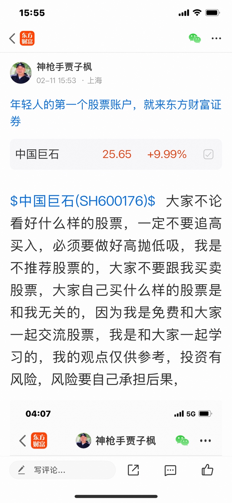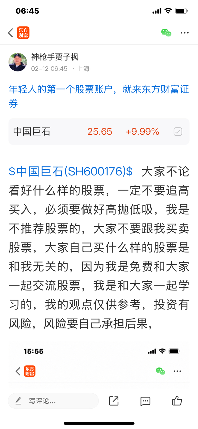 $中国巨石(SH600176)$ 这个股是我昨天看好的股票,大家不要追高买入,必须要做好高抛低吸,我是不推荐股票的,大家不要跟我买卖股票,大家自己买什么样的股票是和我无关的,因为我是免费和大家一起交流股票,我是和大家一起学习的,我的观点仅供参考,投资有风险,风险要自己承担后果,