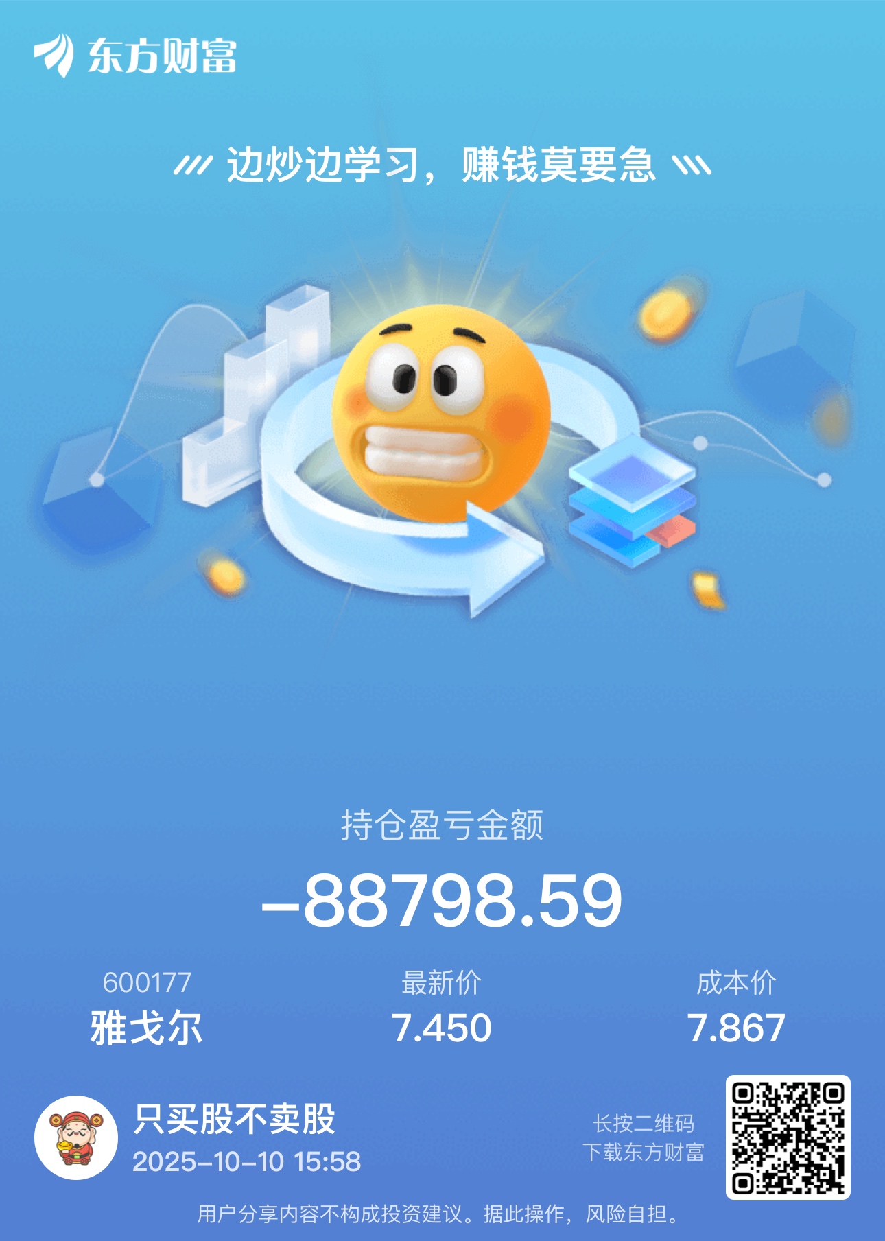温馨提示: 1.根据《证券法》规定,禁止编造、传播虚假信息或者误导性信息,扰乱证券市场;2.用户在本社区发表的所有资料、言论等仅代表个人观点,与本网站立场无关,不对您构成任何投资建议。用户应基于自己的独立判断,自行决定证券投资并承担相应风险。《东方财富社区管理规定》