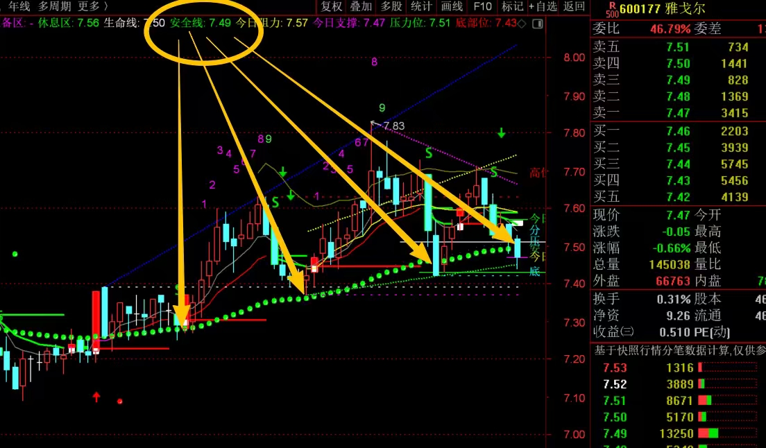 $雅戈尔(SH600177)$ 近期走势偏弱一些,没有明显的上涨势头,短线这里回落主要是看安全线7.49位置的支撑情况,能稳住就还行,前期每一次回落基本都是安全线支撑,比较标准,所以接下来就盯着安全线得失,能稳住至少还能看震荡折腾,但有效跌破就要注意破位风险了,需要控制仓位应对。#炒股日记# #收盘点评#