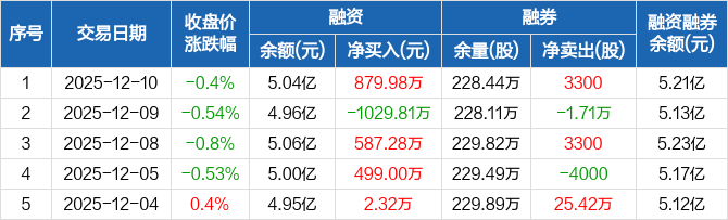 雅戈尔:融资净买入879.98万元,融资余额5.04亿元(12-10)