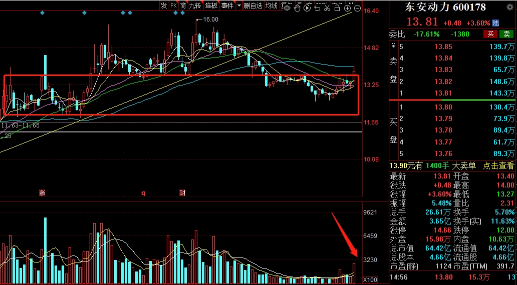 东安动力:箱体突破,成交量二次放大,近日汽车板块和兵装重组板块异动,这只股票趋势