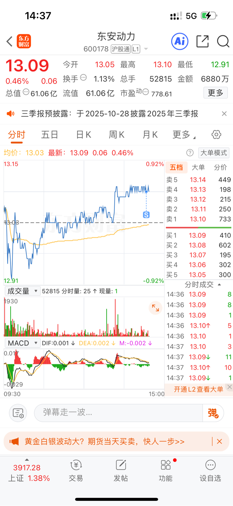$东安动力(SH600178)$ 我走了,你可以拉了,场内的兄弟们吃肉