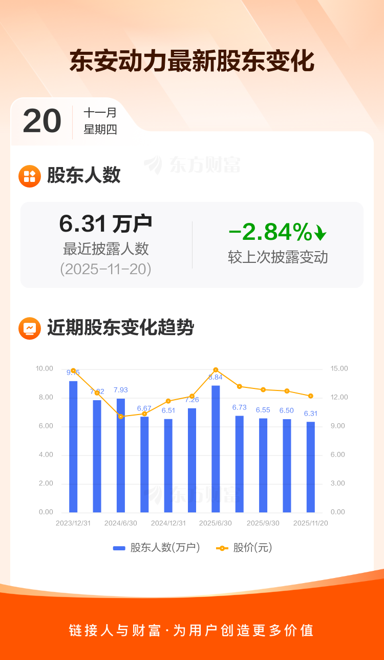 东安动力:截至11月20日最新股东户数6.31万户,较上期减少2.84%
