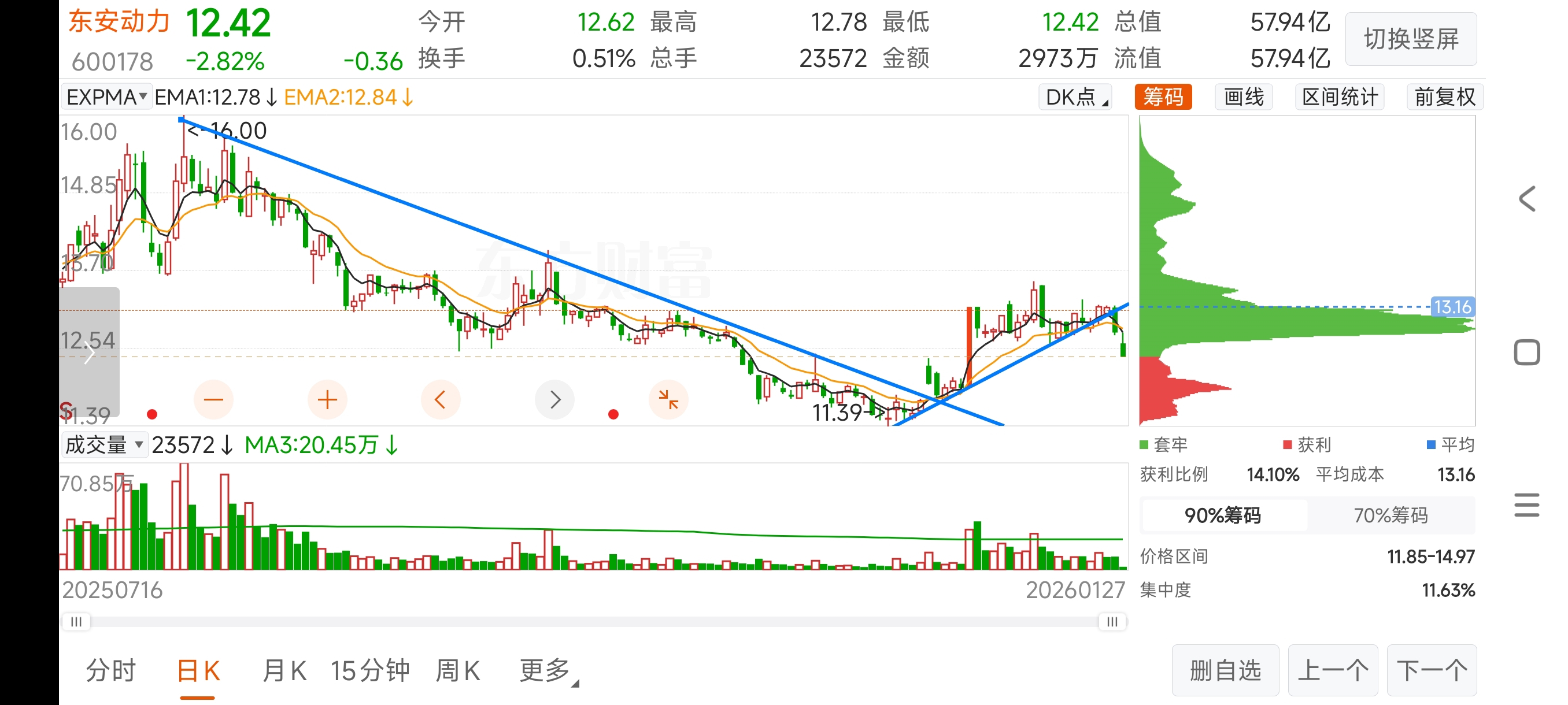 $东安动力(SH600178)$ 昨天就破位了没收回来