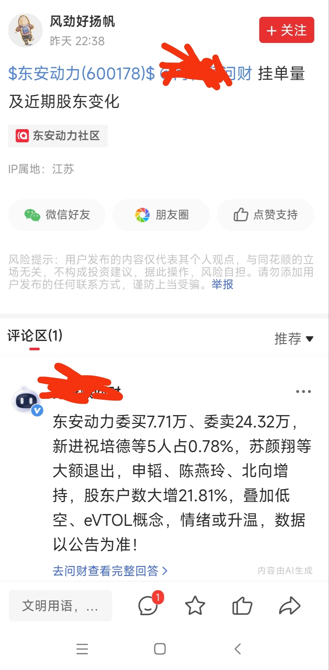 $东安动力(SH600178)$ 恭喜恭喜,小安股东户数近期大涨百分之二十多