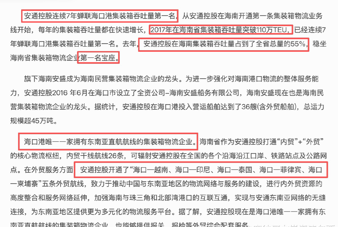 安通控股就干集装箱水运、陆运、铁运,智能联运的,免税商品主要得靠集装箱运输哟。为了突出一个“箱”字,对应的是免税商品,