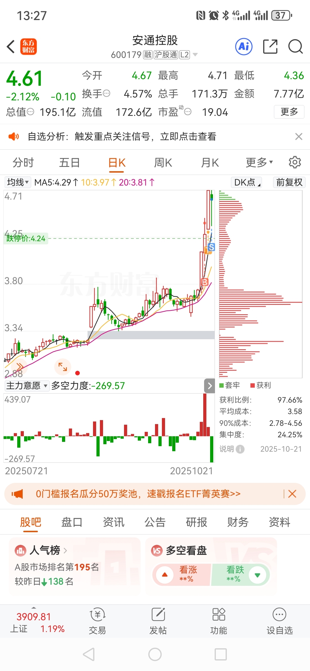 获利的可以出了,等主力出的差不多就闷杀在里面,不然今天进的明天不好出,要让主力跑不完明天才好出,别被贪心闷在里面。