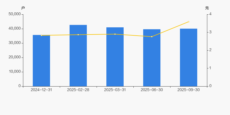 截至2025年9月30日,公司最新总股本为42.32亿股,其中流通股本为37.44亿股。户均持有流通股数量由上期的9.44万股下降至9.35万股,户均流通市值33.55万元。