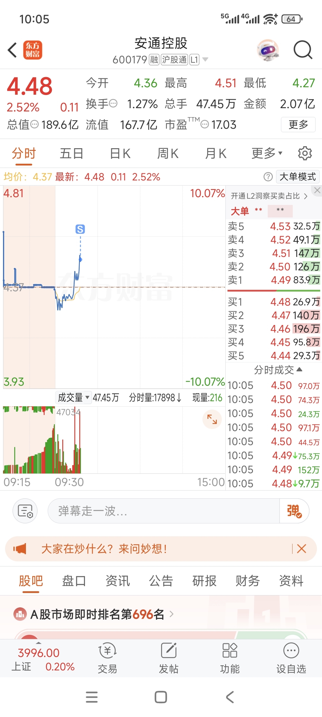 $安通控股(SH600179)$ 谢谢主力哥,昨天进的赚了两个多点。知足了。