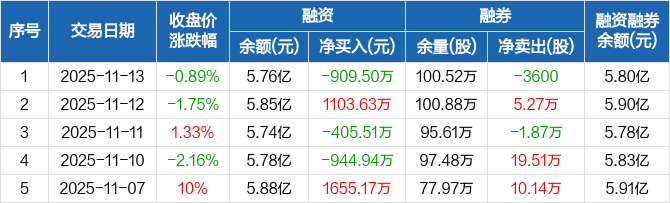 安通控股:融资净偿还909.5万元,融资余额5.76亿元(11-13)
