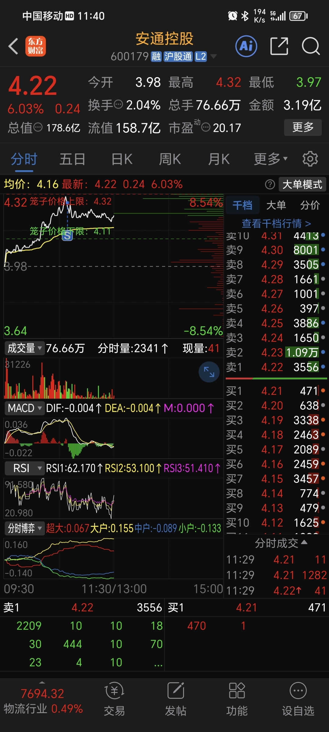 $安通控股(SH600179)$ 对否?下午看情况再接