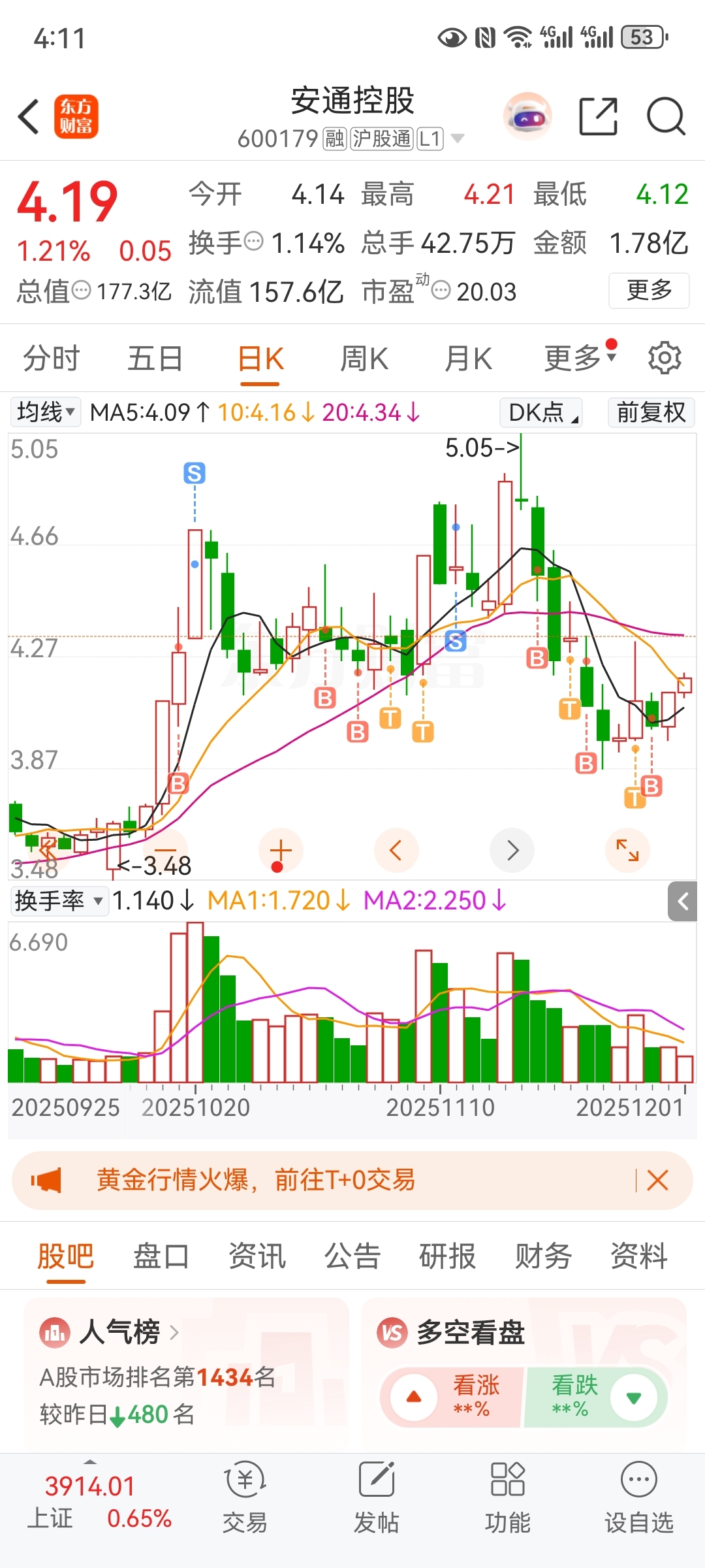 $安通控股(SH600179)$ 这周不做T了,目前进入上涨趋势,一T就飞