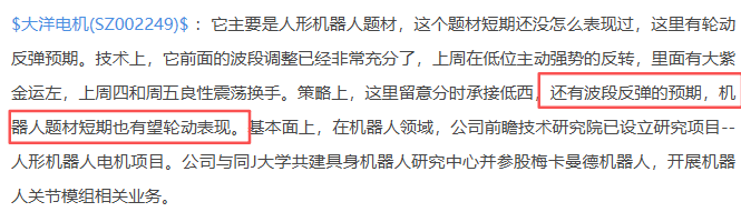 $大洋电机(SZ002249)$:它日内小幅震荡反弹,短期还是一个蓄势状态,机器人题材还有轮动预期,那么短期它还有望走出反弹阳线。今早它的位置还是不错的,坤哥就低西了一些,继续跟踪反弹行情。