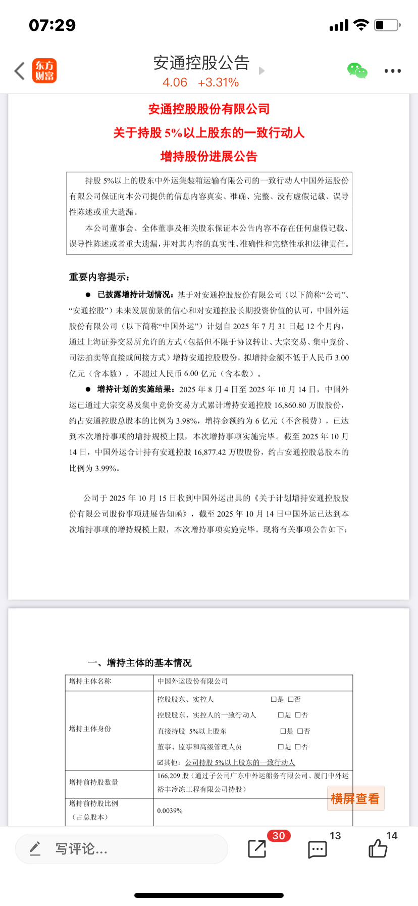 $安通控股(SH600179)$ 25.10.15晚上公告了增持成功后,连续三天大幅拉升!
