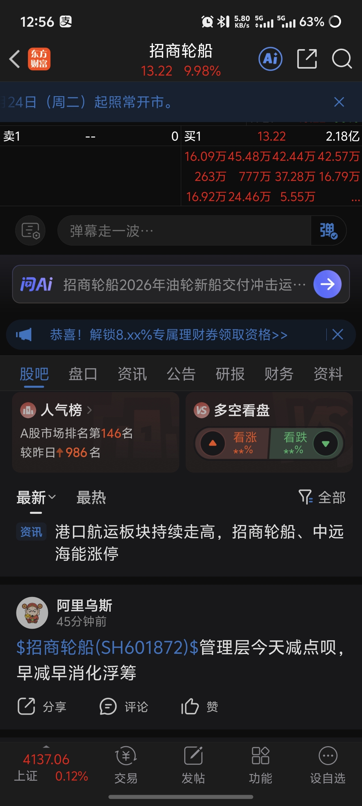 温馨提示: 1.根据《证券法》规定,禁止编造、传播虚假信息或者误导性信息,扰乱证券市场;2.用户在本社区发表的所有资料、言论等仅代表个人观点,与本网站立场无关,不对您构成任何投资建议。用户应基于自己的独立判断,自行决定证券投资并承担相应风险。《东方财富社区管理规定》