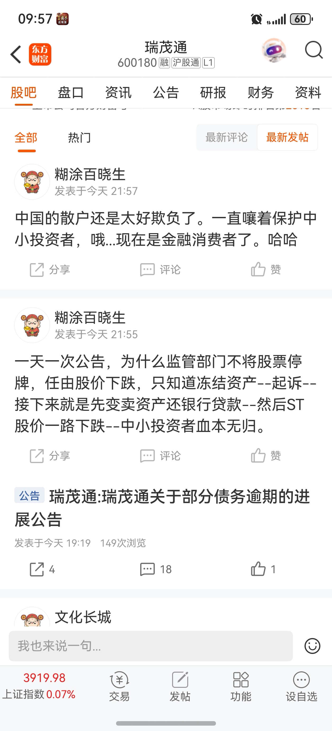 温馨提示: 1.根据《证券法》规定,禁止编造、传播虚假信息或者误导性信息,扰乱证券市场;2.用户在本社区发表的所有资料、言论等仅代表个人观点,与本网站立场无关,不对您构成任何投资建议。用户应基于自己的独立判断,自行决定证券投资并承担相应风险。《东方财富社区管理规定》