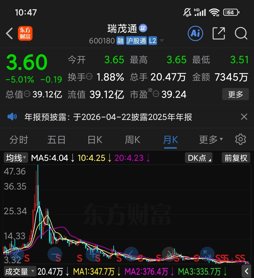 $瑞茂通(SH600180)$ $瑞茂通(SH600180)$ 富贵险中求,小散挣大钱的唯一方法,暴跌后分仓买入,翻倍卖出。不足就是瑞瑞利空频出,不够触发sT退市条件,没一字跌停,主力不够狠。可适时建仓玩玩。
