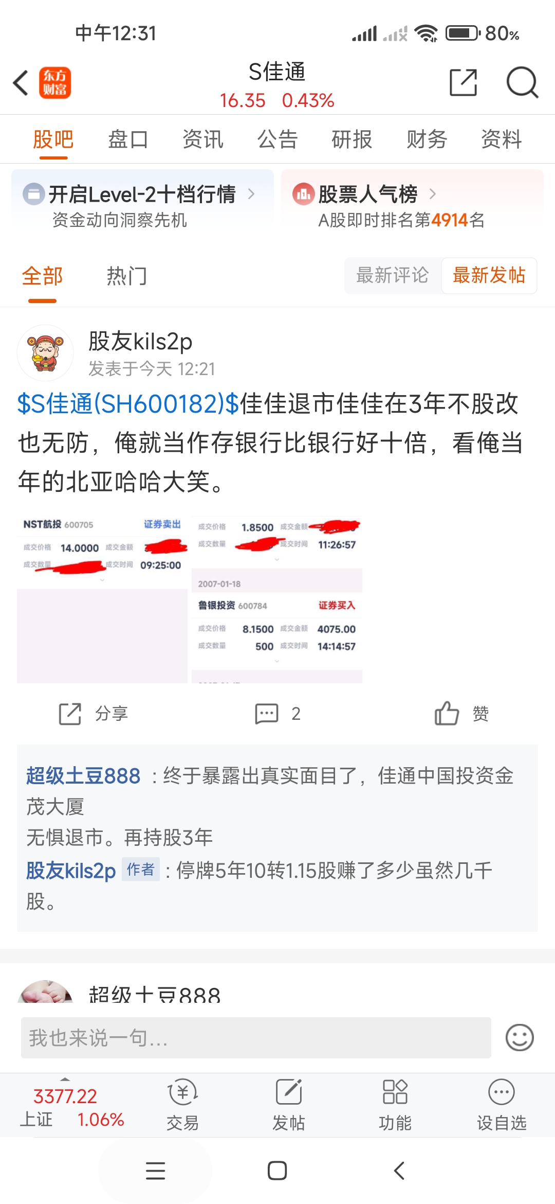 温馨提示: 1.根据《证券法》规定,禁止编造、传播虚假信息或者误导性信息,扰乱证券市场;2.用户在本社区发表的所有资料、言论等仅代表个人观点,与本网站立场无关,不对您构成任何投资建议。用户应基于自己的独立判断,自行决定证券投资并承担相应风险。《东方财富社区管理规定》