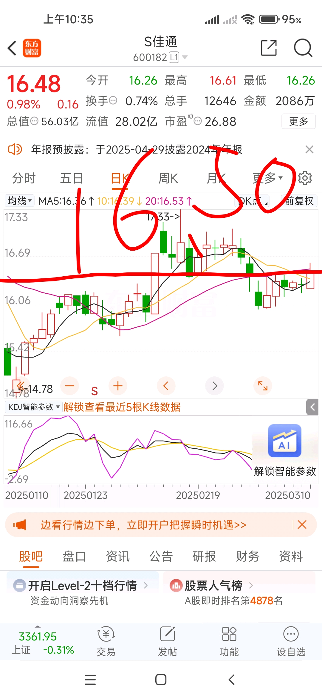 多空分歧线16.5元,看能不能冲上去并站稳大家都是自己决定买卖,盈亏都是自己的事