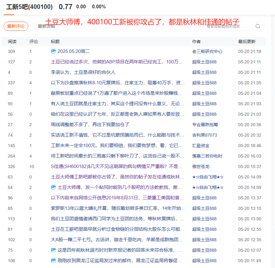 土豆大师傅400100工新被你攻占了,都是秋林和佳通的帖子在工新吧里晃着呢