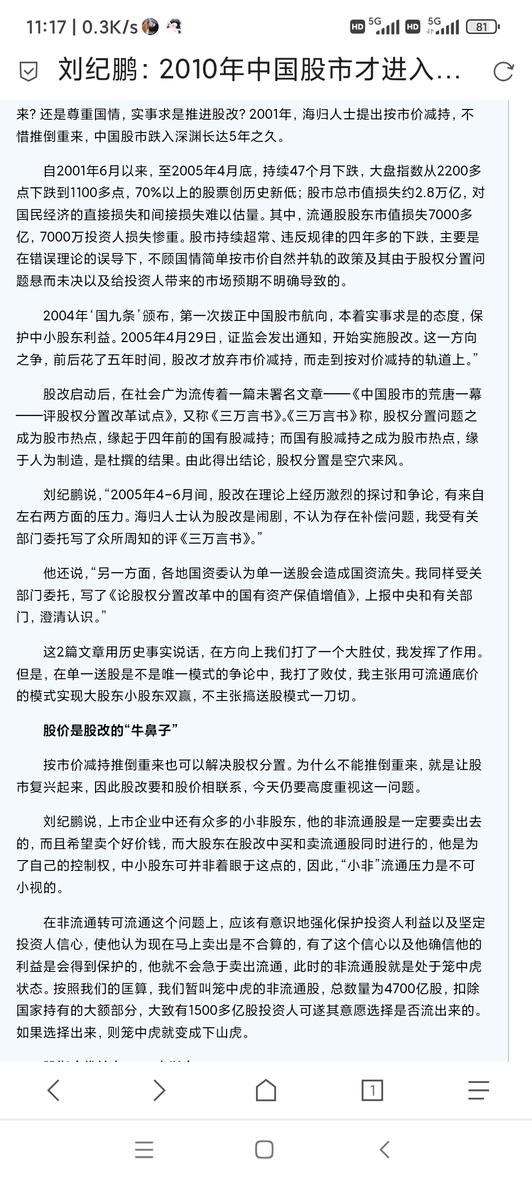 股价才是股改的‘牛鼻子’,这可是刘教授的原话,适合于任何时间段。
