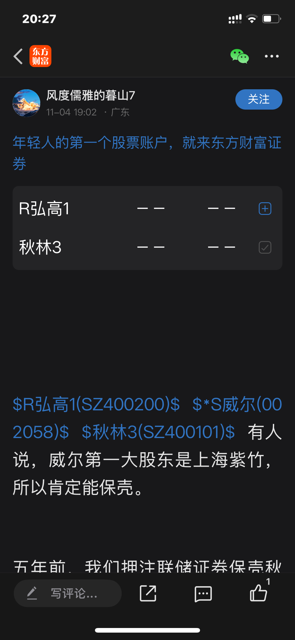 温馨提示: 1.根据《证券法》规定,禁止编造、传播虚假信息或者误导性信息,扰乱证券市场;2.用户在本社区发表的所有资料、言论等仅代表个人观点,与本网站立场无关,不对您构成任何投资建议。用户应基于自己的独立判断,自行决定证券投资并承担相应风险。《东方财富社区管理规定》