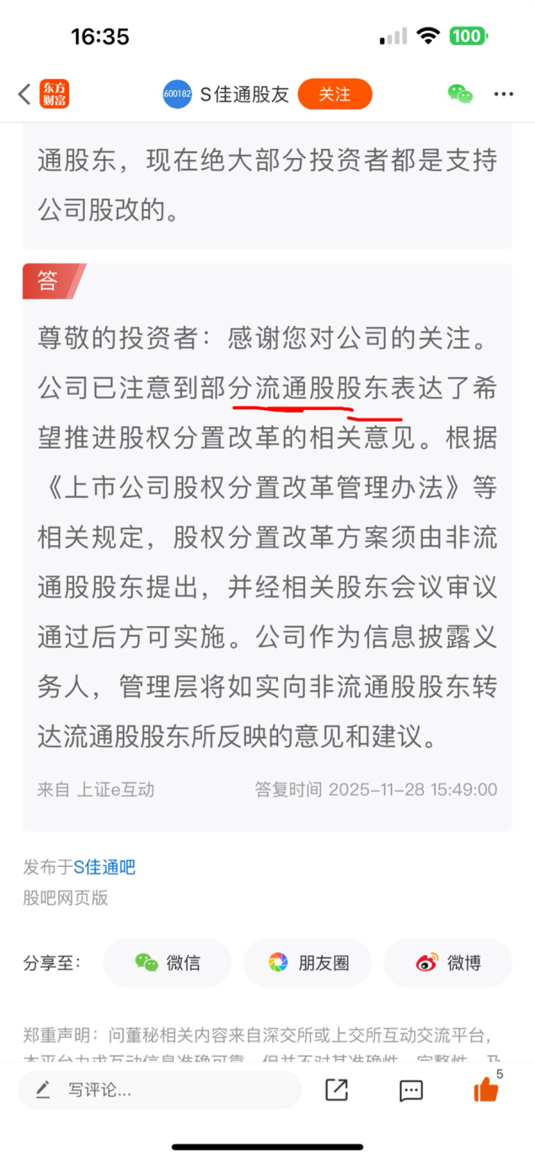 $S佳通(SH600182)$ 是不是李陆军打电话向公司表达了