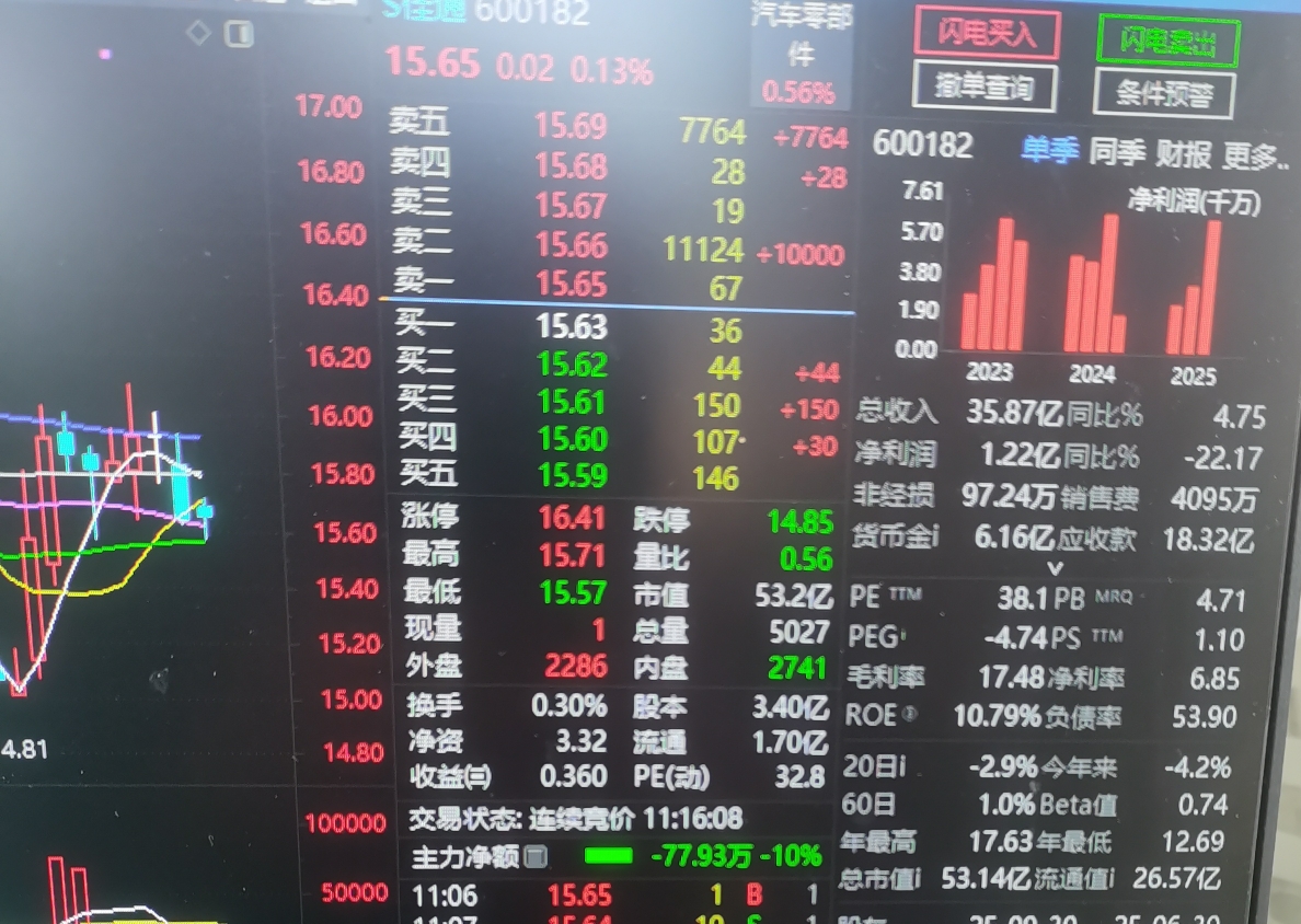 $S佳通(SH600182)$ 这压盘匹以为涨停呢。