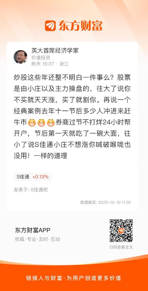 券商过节不打烊24小时帮开户,节后第一天就吃了一碗大面,往小了说S佳通小庄不想涨你喊破喉咙也没用!一样的道理