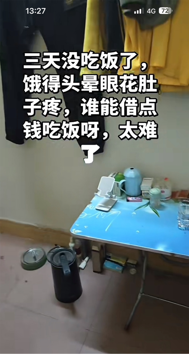 在线求助实力派大佬们赏5块钱吃饭,我已经三天没有吃饭了,待在出租屋都不敢出门