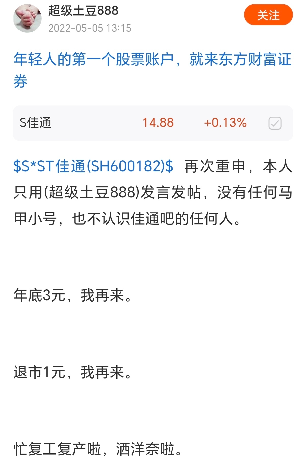 $S佳通(SH600182)$ $秋林3(SZ400101)$ 乐子继续分享,豆啊真实点,跟你说了不下二十次了,直接说希望佳通和秋林一样就行了,天天编造谎言做什么了?