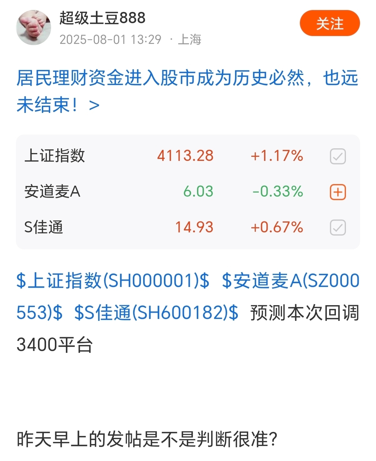 $S佳通(SH600182)$ $秋林3(SZ400101)$ 每天的欢乐是土豆提供的,在来欣赏股市空想家,红米用户的欢乐言论。豆啊,天天空想你能获得什么呢
