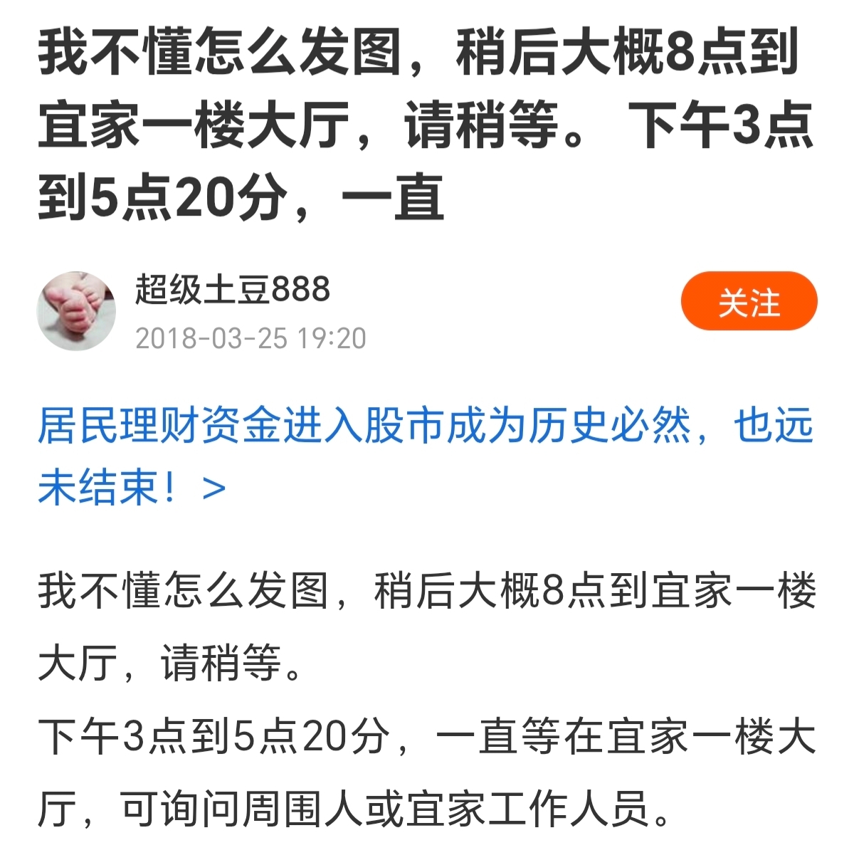 $S佳通(SH600182)$ $秋林3(SZ400101)$ 豆啊,你不懂发图啊,别人真发图在宜家的时候,你怎么躲了?还要别人问路人是不是见过你?路人知道你是谁?