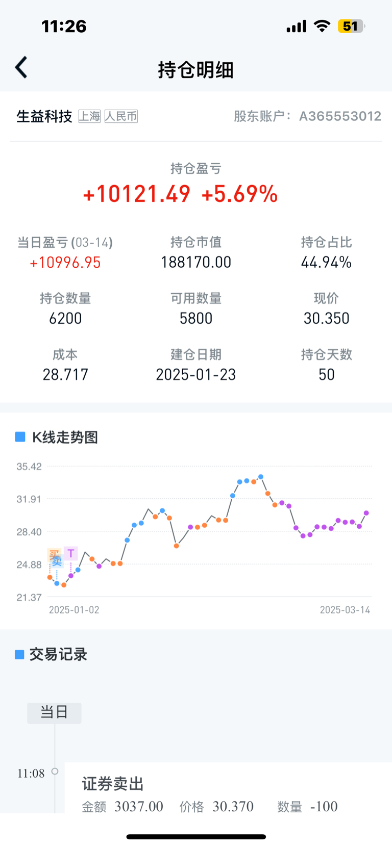 今天早上做个小T,有效突破30日线的压力位考虑加仓,否则看28左右的支撑。那只无