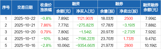 生益科技:融资净买入1121.9万元,融资余额7.89亿元(10-22)